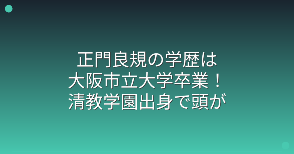 正門良規の学歴は大阪市立大学卒業!清教学園出身で頭が良すぎる理由とは?