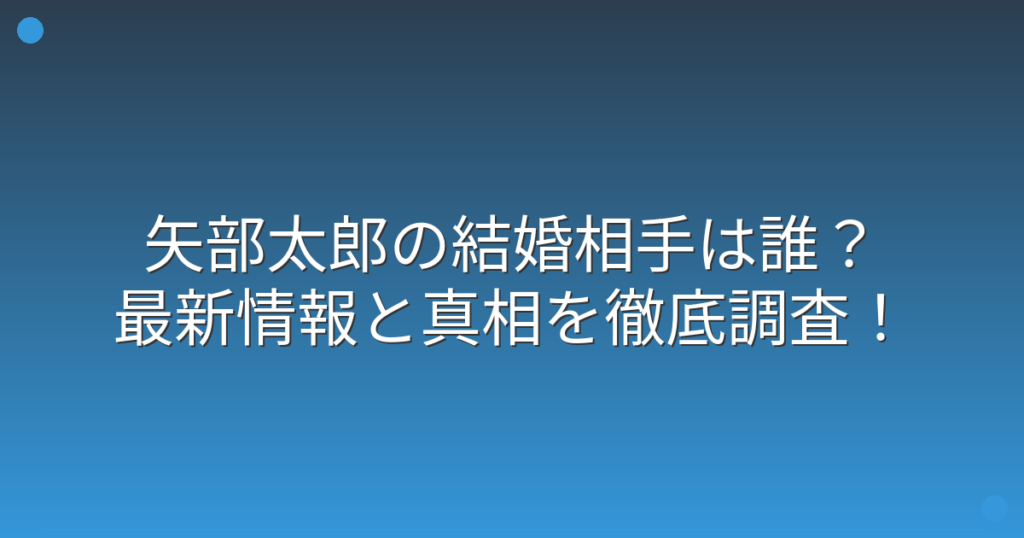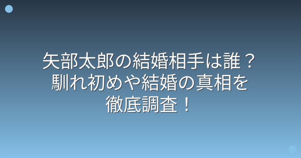 矢部太郎の結婚相手は誰?最新情報と真相を徹底調査!