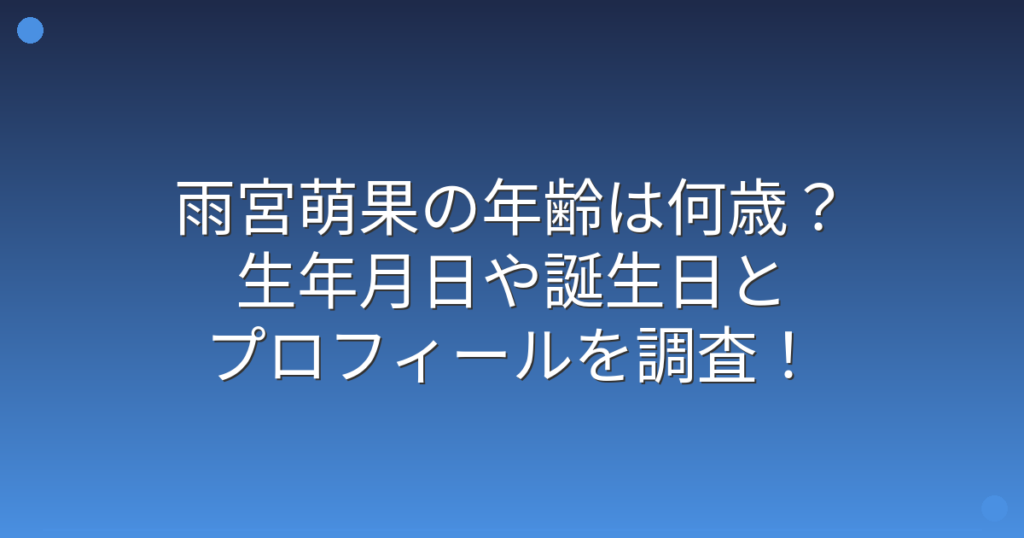 雨宮萌果の年齢は何歳?生年月日や誕生日とプロフィールを調査!