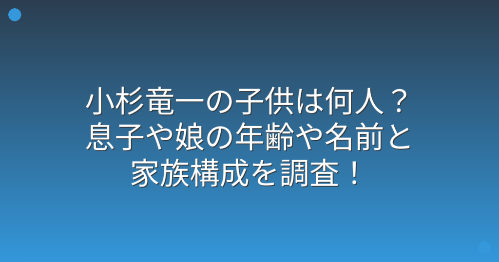 小杉竜一の子供は何人?息子や娘の年齢や名前と家族構成を調査!
