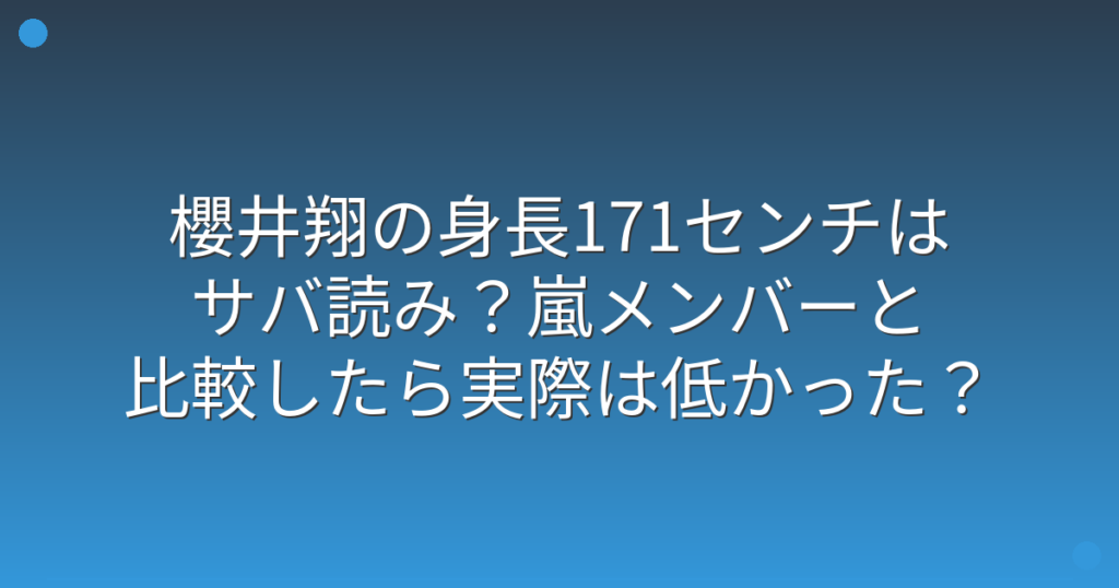 嵐の櫻井翔さんの身長について、ネットやSNSで「サバ読み疑惑」が話題になっていますね。 公式プロフィールでは171センチとされていますが、テレビで見ると意外と小柄に見えるという声も多く聞かれます。 そこで今回は、櫻井翔さんの身長の真相や嵐メンバ... -