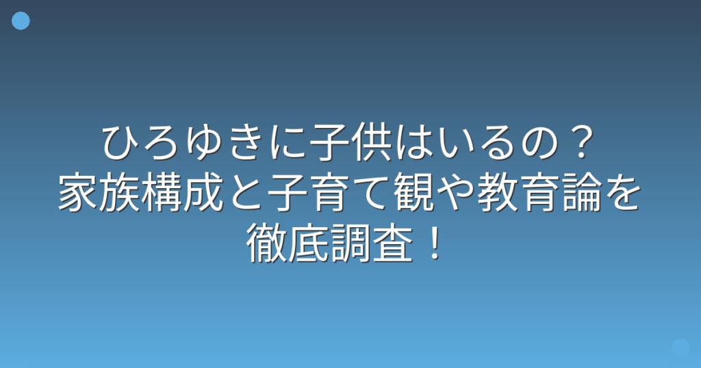 ひろゆきに子供はいるの?家族構成と子育て観や教育論を徹底調査!