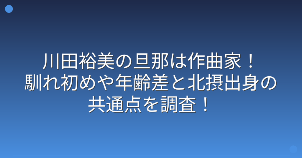 川田裕美の旦那は作曲家!馴れ初めや年齢差と北摂出身の共通点を調査!