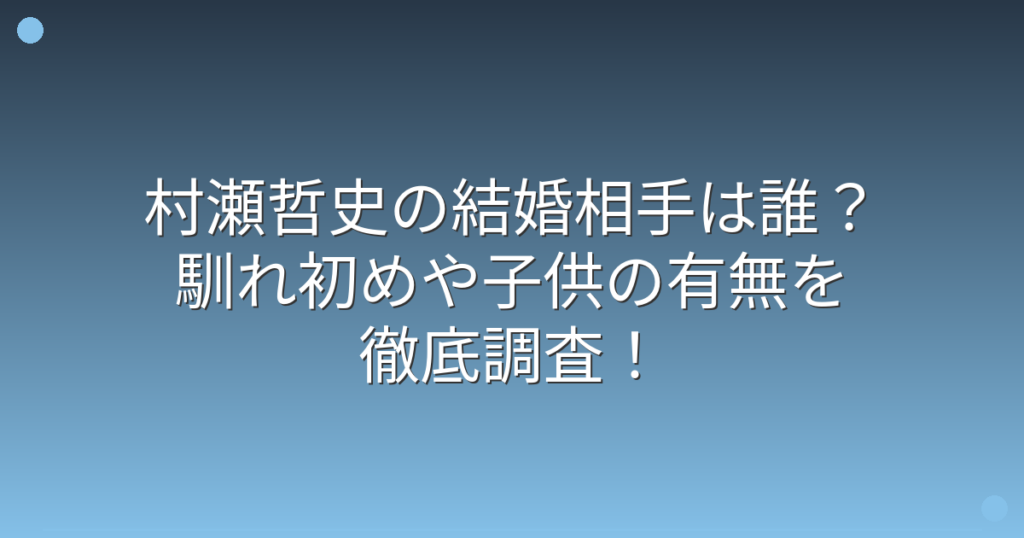 村瀬哲史の結婚相手は誰?馴れ初めや子供の有無を徹底調査!
