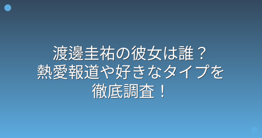 俳優の渡邊圭祐さんが、2026年の映画出演やカレンダー発売で話題になっていますね。 多くのドラマや映画で活躍する渡邊圭祐さんですが、プライベートな恋愛事情も気になるところです。 そこで今回は、渡邊圭祐さんの彼女や熱愛報道、好きなタイプについて... -
