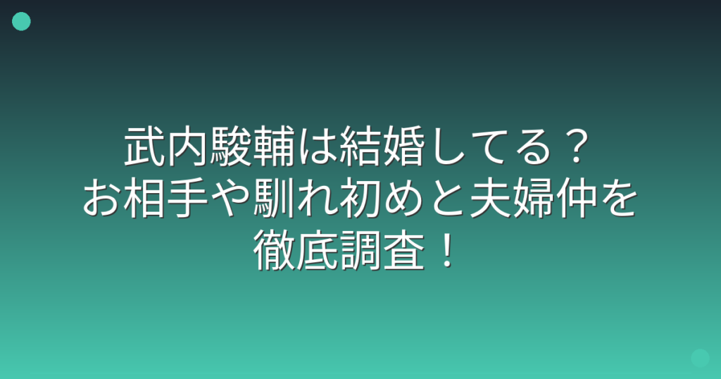 武内駿輔は結婚してる?お相手や馴れ初めと夫婦仲を徹底調査!