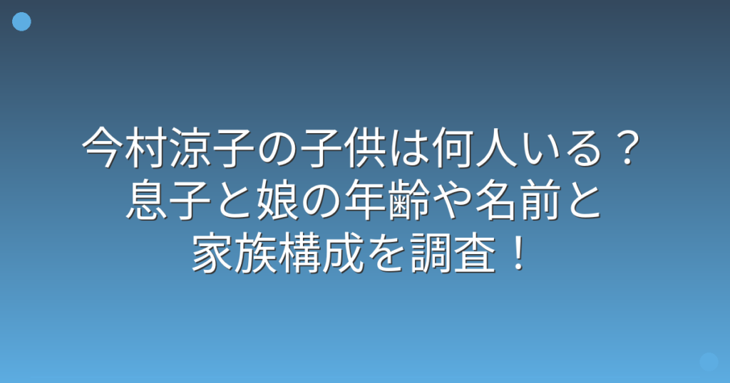 今村涼子の子供は何人いる?息子と娘の年齢や名前と家族構成を調査!