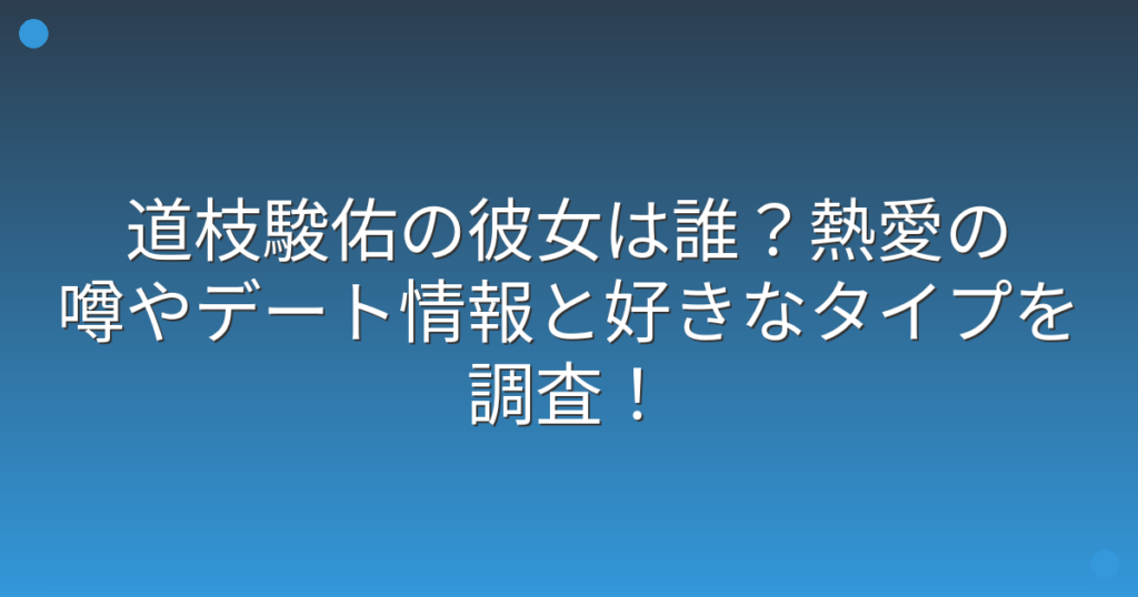 道枝駿佑の彼女は誰?熱愛の噂やデート情報と好きなタイプを調査!