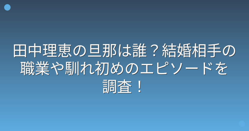田中理恵の旦那は誰?結婚相手の職業や馴れ初めのエピソードを調査!