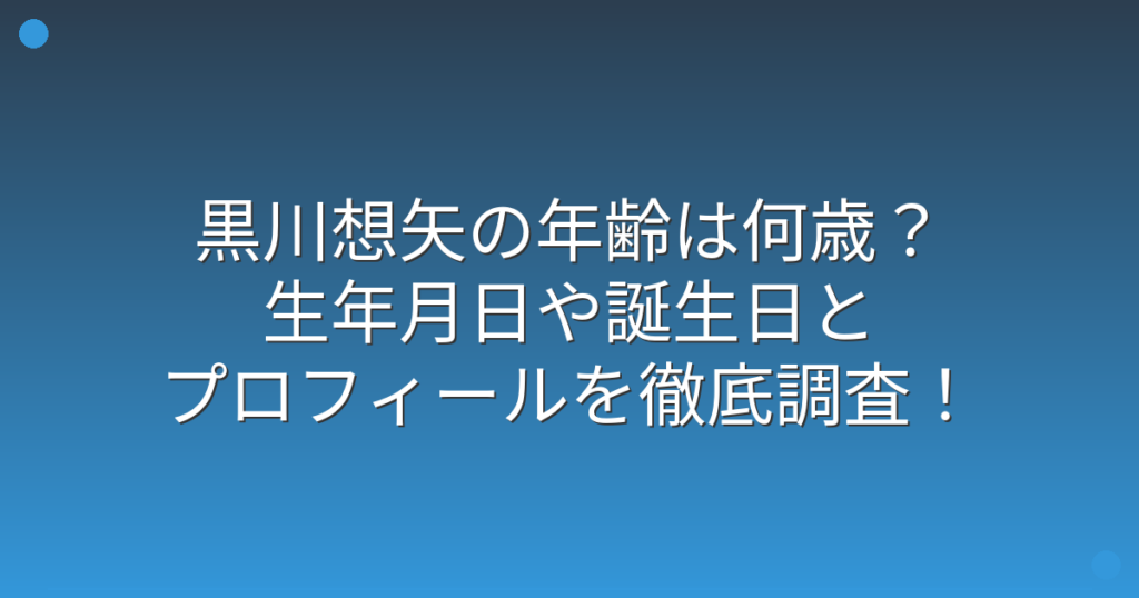 黒川想矢の年齢は何歳?生年月日や誕生日とプロフィールを徹底調査!
