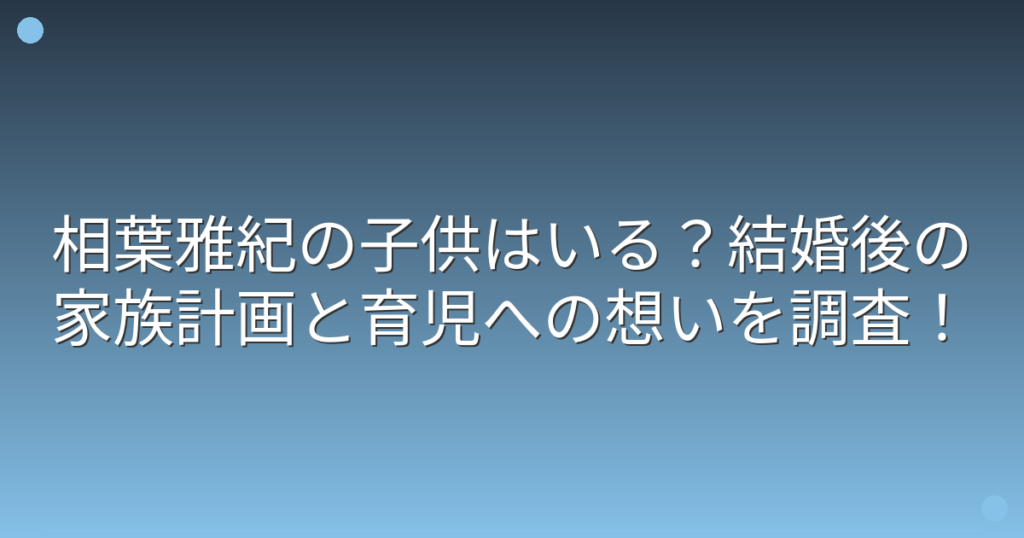 相葉雅紀の子供はいる?結婚後の家族計画と育児への想いを調査!