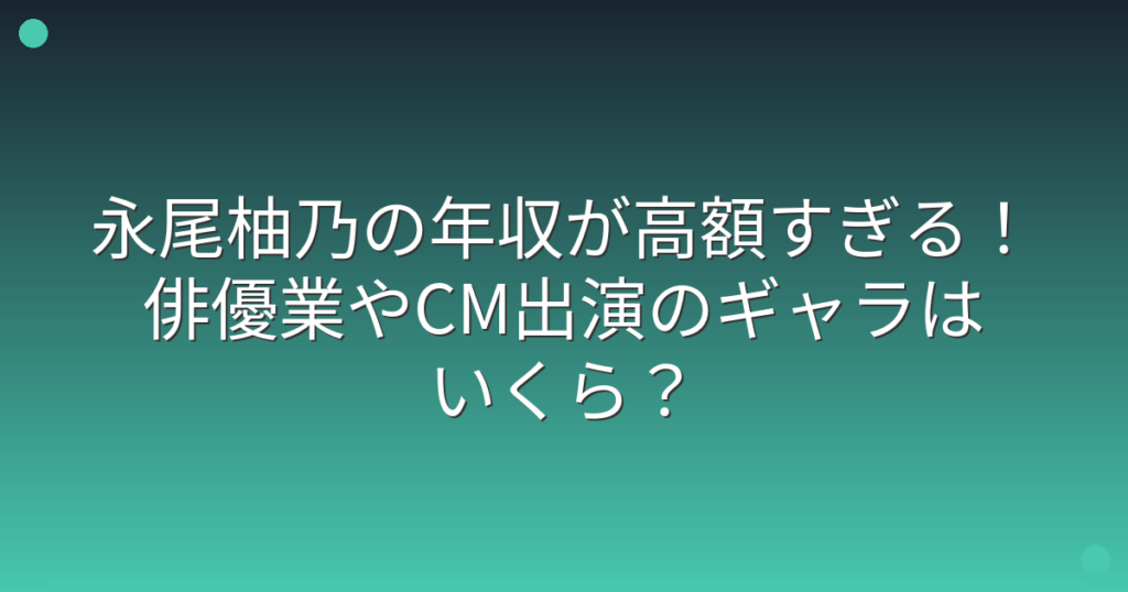 若手女優として注目を集めている永尾柚乃さんの年収が話題になっていますね。 ドラマやCMへの出演が増えている永尾柚乃さんですが、一体どれくらいの収入を得ているのか気になる方も多いのではないでしょうか。 そこで今回は、永尾柚乃さんの年収や俳優業... -