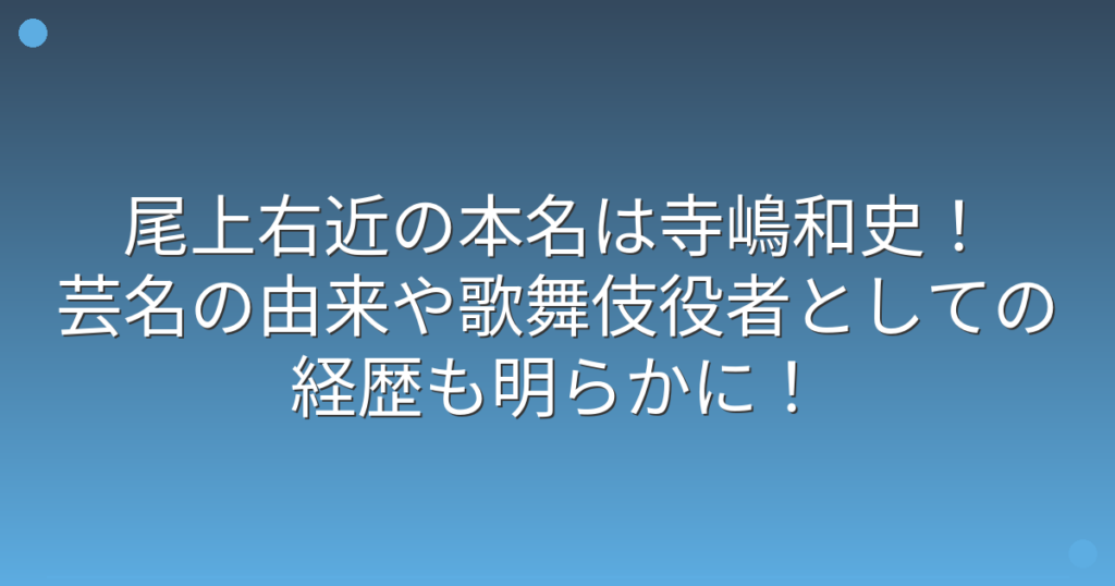 尾上右近の本名は寺嶋和史!芸名の由来や歌舞伎役者としての経歴も明らかに!