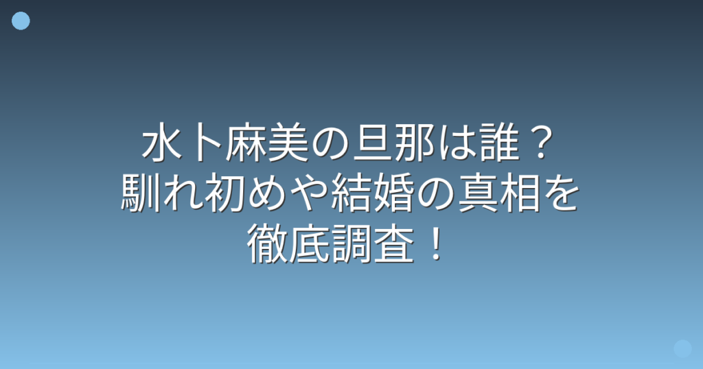 水卜麻美の旦那は誰?馴れ初めや結婚の真相を徹底調査!