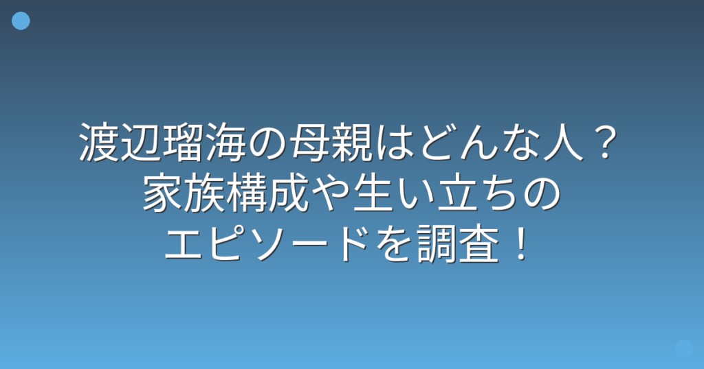 渡辺瑠海の母親はどんな人?家族構成や生い立ちのエピソードを調査!