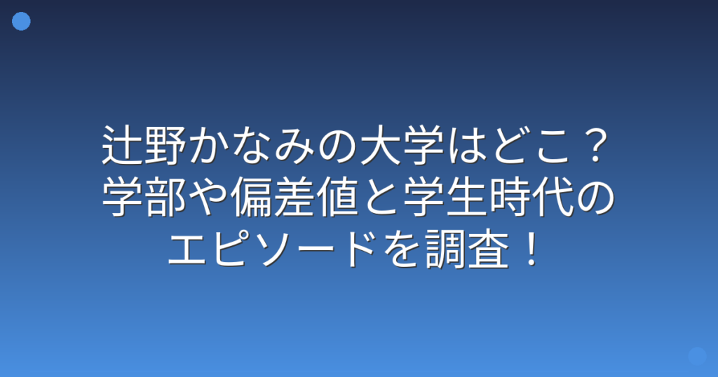 辻野かなみさんの大学について、ファンの間で話題になっていますね。 才能あふれる辻野かなみさんがどのような学生生活を送っていたのか、気になる方も多いのではないでしょうか。 そこで今回は、辻野かなみさんの大学や学部、偏差値、学生時代のエピソー... -