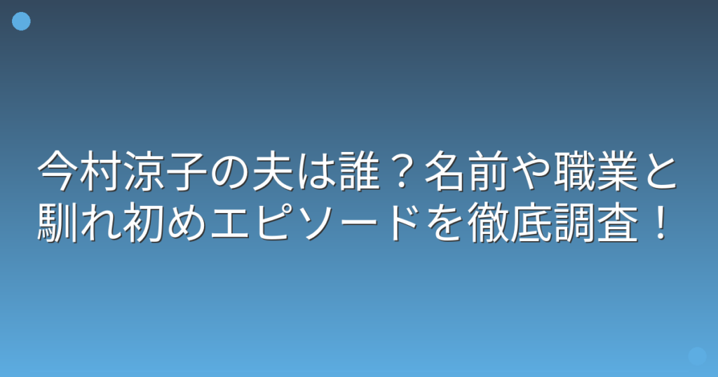 今村涼子の夫は誰?名前や職業と馴れ初めエピソードを徹底調査!