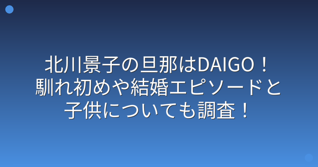 女優の北川景子さんの旦那さんについて、改めて注目が集まっていますね。 北川景子さんは2016年にミュージシャンのDAIGOさんと結婚され、現在も幸せな家庭を築いていると言われています。 そこで今回は、北川景子さんの旦那であるDAIGOさんとの馴れ初めや... -