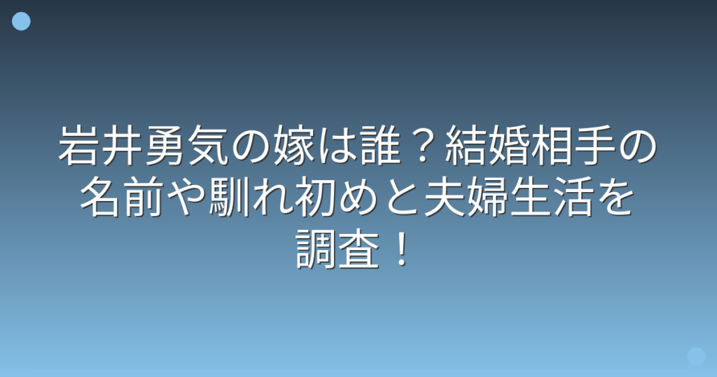 岩井勇気の嫁は誰?結婚相手の名前や馴れ初めと夫婦生活を調査!
