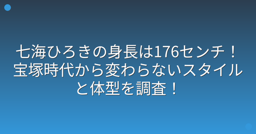 元宝塚歌劇団星組トップスターの七海ひろきさんが、現在も俳優として活躍されていますね。 宝塚時代から変わらない美しいスタイルが話題になっています。 そこで今回は、七海ひろきさんの身長やスタイル、体型について詳しく見ていきましょう! 七海ひろき... -