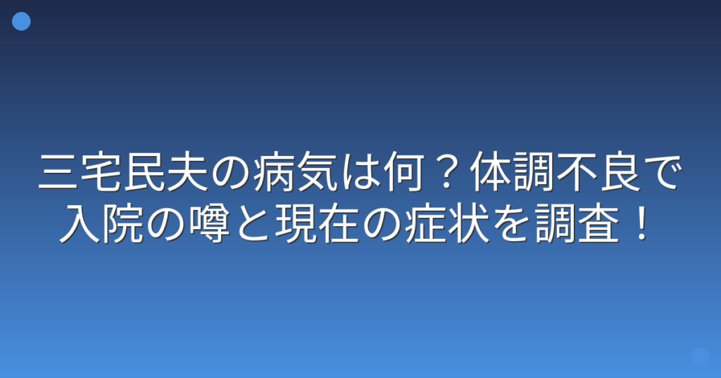 三宅民夫の病気は何?体調不良で入院の噂と現在の症状を調査!