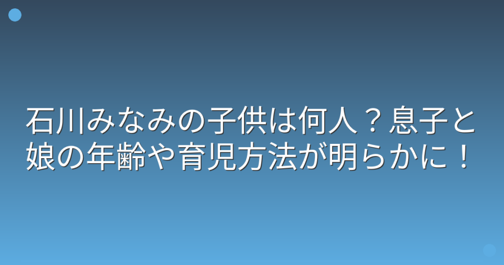 石川みなみの子供は何人?息子と娘の年齢や育児方法が明らかに!