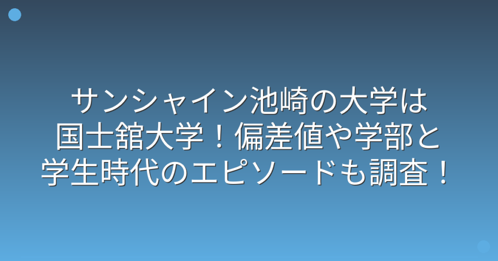 サンシャイン池崎の大学は国士舘大学!偏差値や学部と学生時代のエピソードも調査!