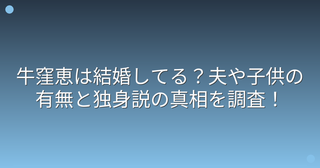 牛窪恵は結婚してる?夫や子供の有無と独身説の真相を調査!