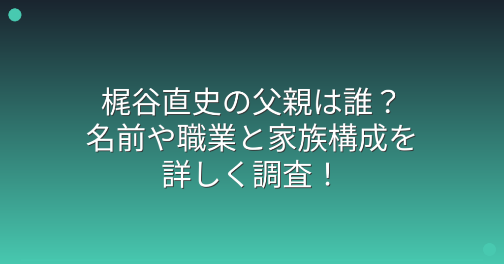 梶谷直史の父親は誰?名前や職業と家族構成を詳しく調査!