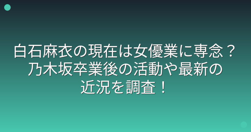 白石麻衣の現在は女優業に専念?乃木坂卒業後の活動や最新の近況を調査!