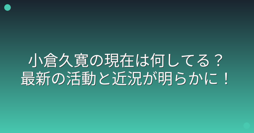 小倉久寛の現在は何してる?最新の活動と近況が明らかに!