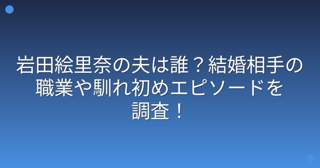 岩田絵里奈の夫は誰?結婚相手の職業や馴れ初めエピソードを調査!