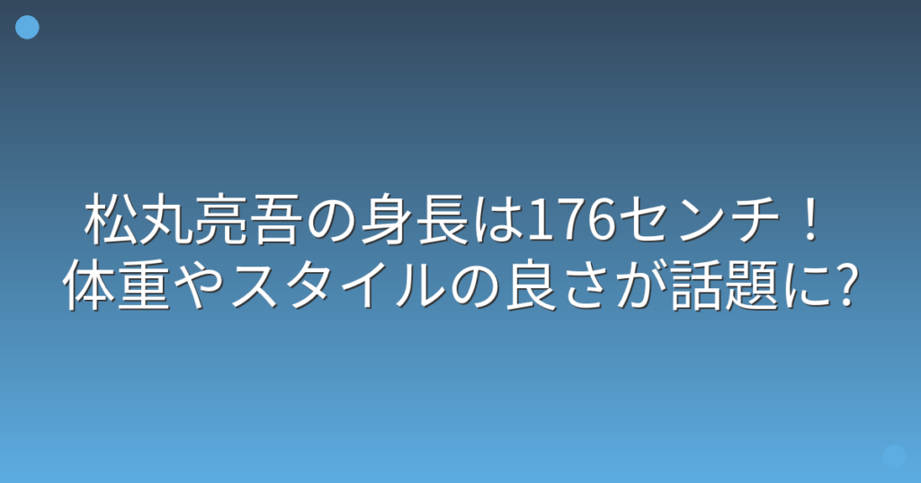 松丸亮吾の身長は176センチ!体重やスタイルの良さが話題に?