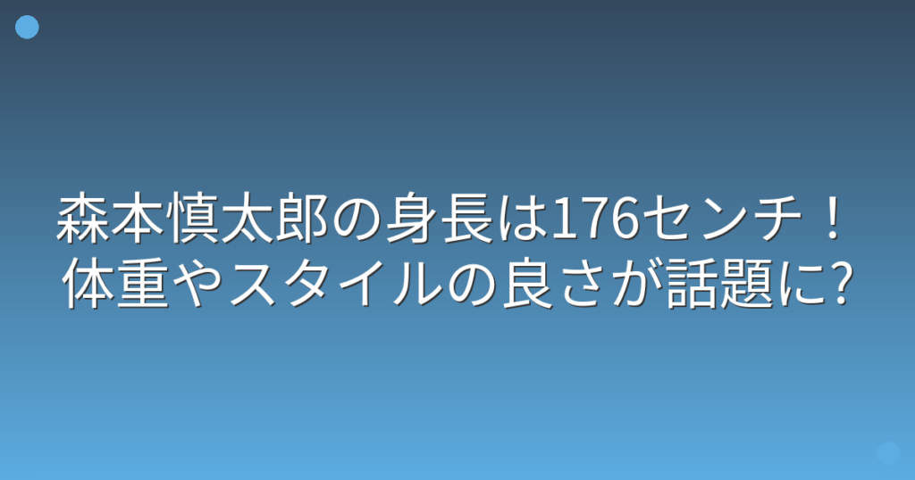 SixTONESのメンバーとして活躍する森本慎太郎さんの身長やスタイルが注目されていますね。 アイドルとしてだけでなく、俳優としても活動する森本慎太郎さんですが、その恵まれた体型が話題になっています。 そこで今回は、森本慎太郎さんの身長や体重、ス... -