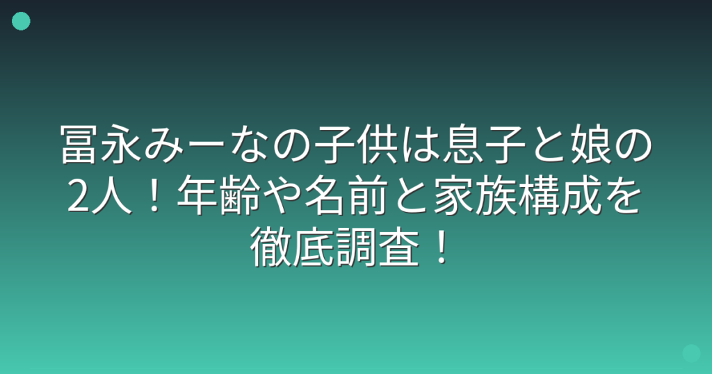 冨永みーなの子供は息子と娘の2人!年齢や名前と家族構成を徹底調査!