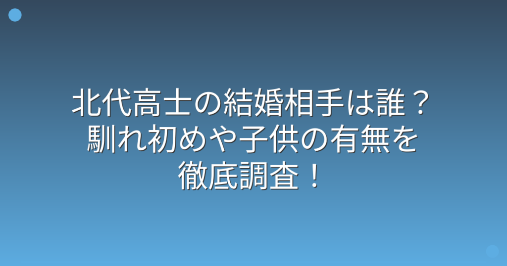 北代高士の結婚相手は誰?馴れ初めや子供の有無を徹底調査!