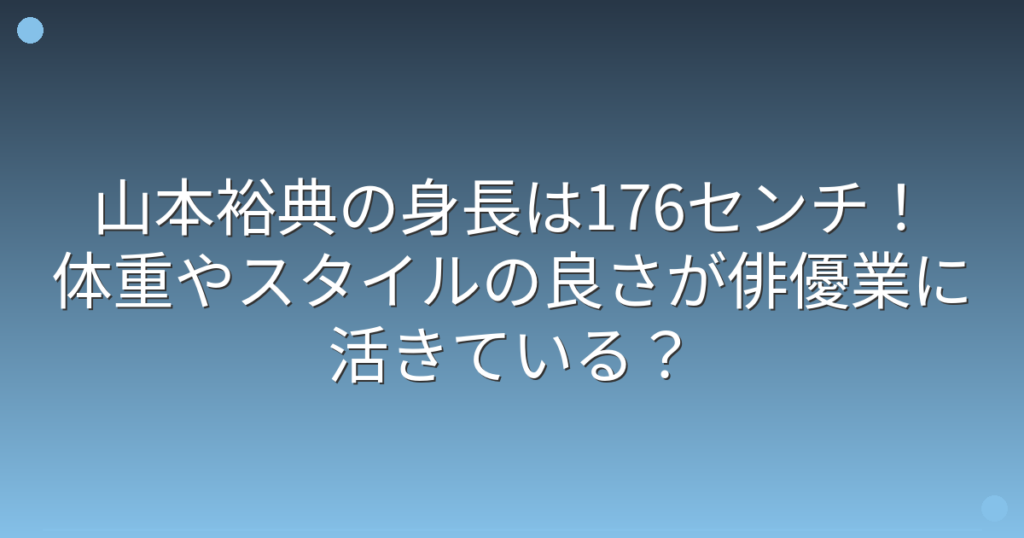 俳優として数々のドラマや映画で活躍している山本裕典さんですが、そのスタイルの良さが話題になっていますね。 特に身長や体型について気になっている方も多いのではないでしょうか。 そこで今回は、山本裕典さんの身長や体重、スタイルについて詳しく見... -
