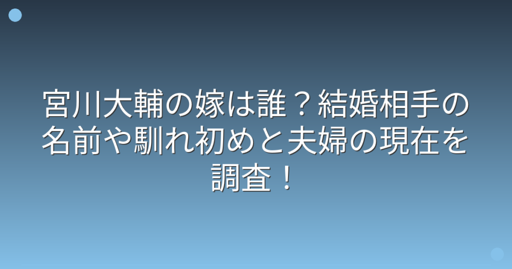 宮川大輔の嫁は誰?結婚相手の名前や馴れ初めと夫婦の現在を調査!