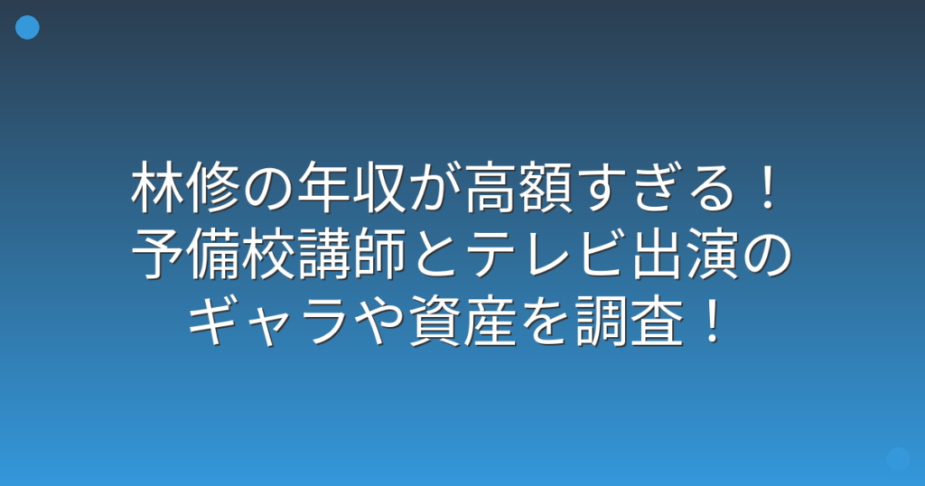 林修の年収が高額すぎる!予備校講師とテレビ出演のギャラや資産を調査!