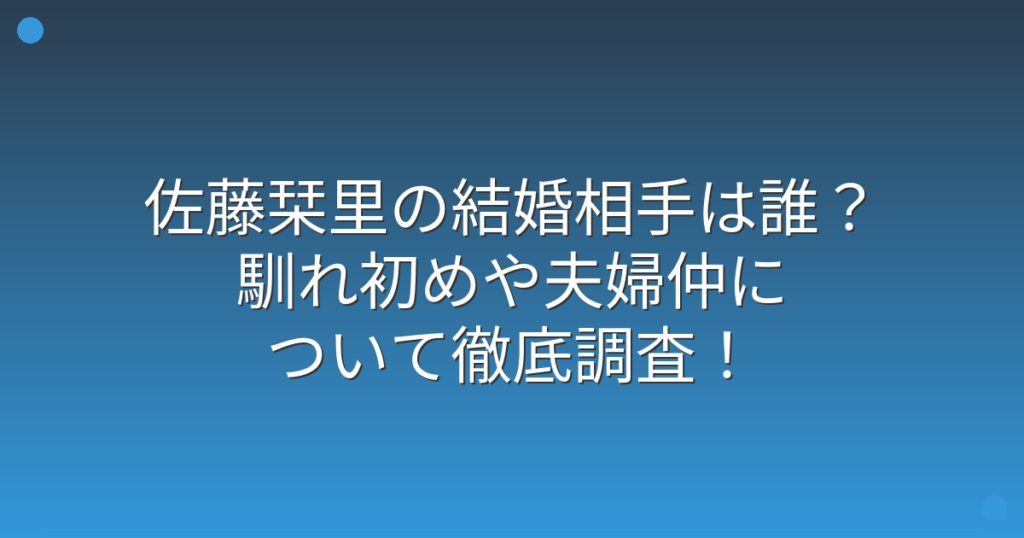 モデルでタレントの佐藤栞里さんの結婚について、ファンの間で大きな注目が集まっていますね。 明るく親しみやすいキャラクターで人気の佐藤栞里さんですが、プライベートな恋愛や結婚についてはあまり公にされていないため、気になっている方も多いのでは... -