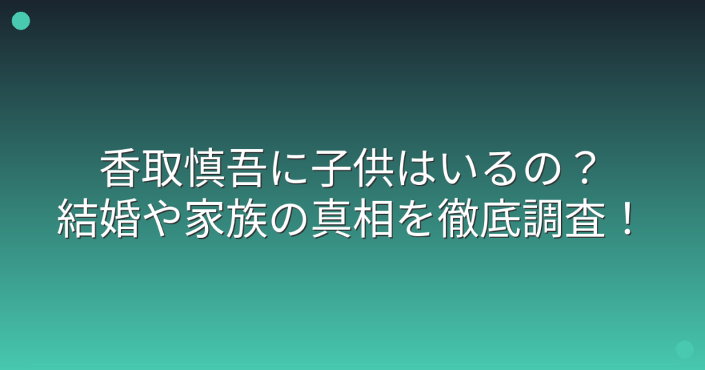香取慎吾に子供はいるの?結婚や家族の真相を徹底調査!