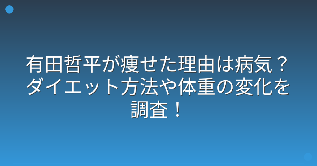 有田哲平が痩せた理由は病気?ダイエット方法や体重の変化を調査!