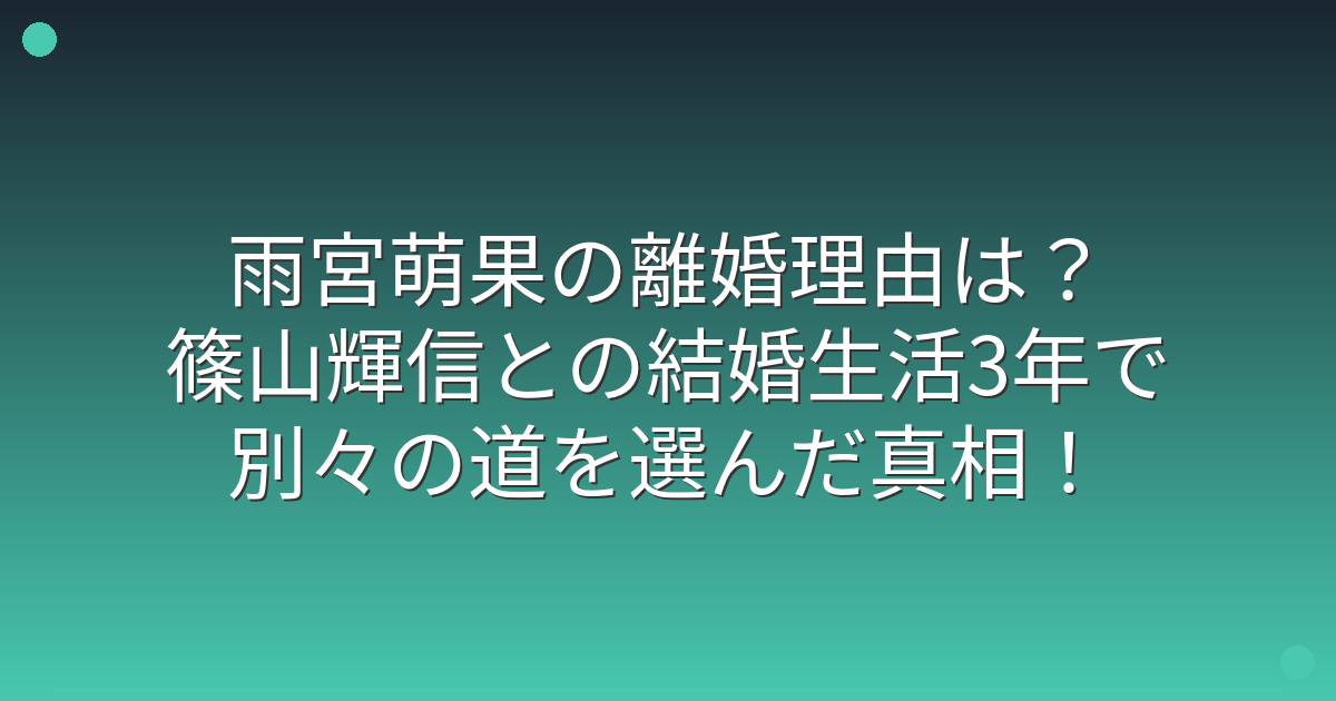 雨宮萌果さんと篠山輝信さんの離婚理由については、お互いの人生を尊重して別々の道を歩むことを決めたという合意離婚でした。