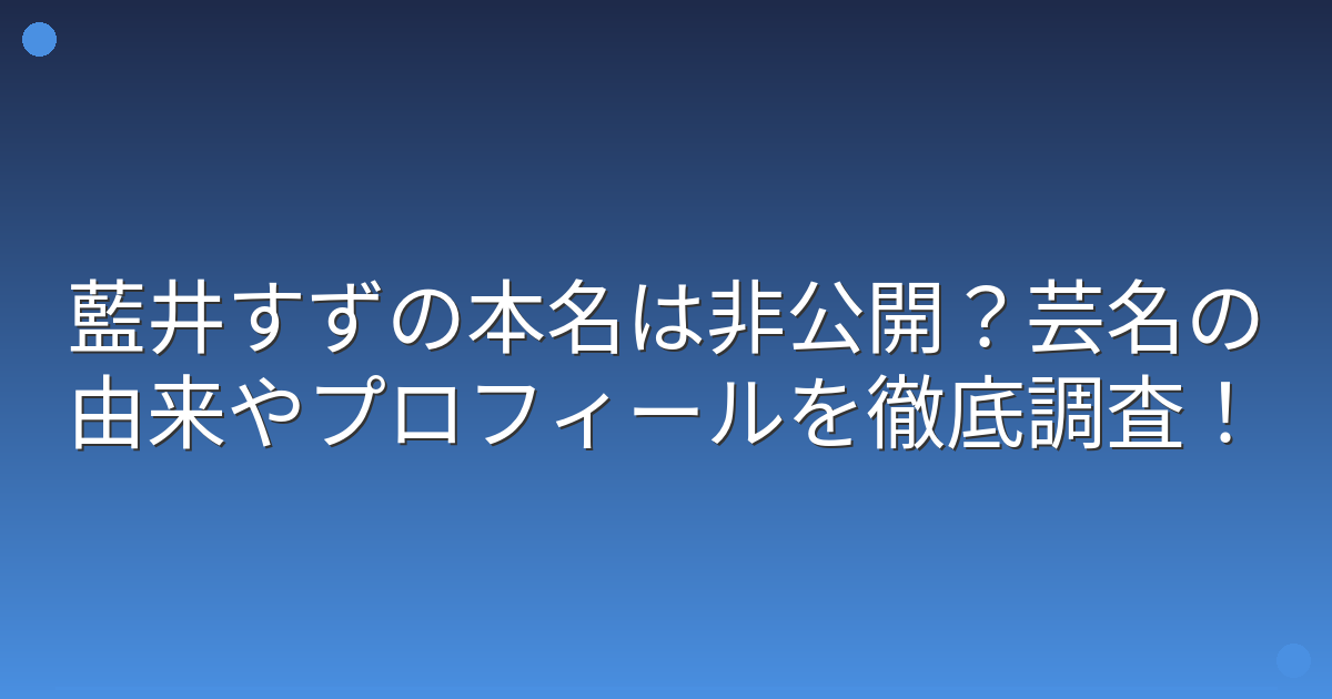 「藍井すず」という芸名の由来については公式発表がないものの、その響きや漢字の選び方から、清楚で親しみやすいイメージを表現していると考えられます。