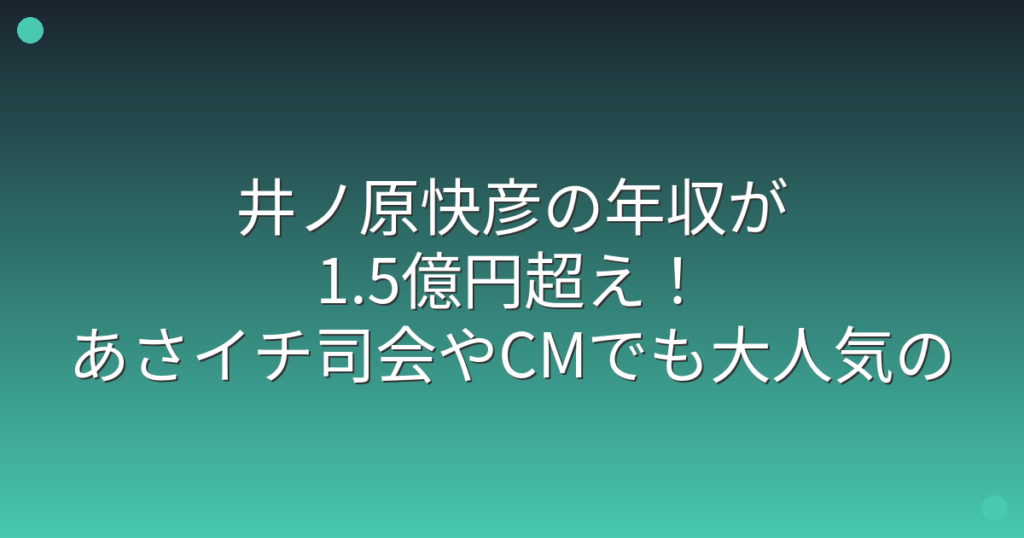 人気タレントの井ノ原快彦さんは、V6のメンバーとしての活動から、現在は「あさイチ」の司会や俳優業など幅広く活躍されています。 特に安定した収入源を持つことで知られる井ノ原さんの年収について、多くの方が興味を持たれているようです。 そこで今回... -