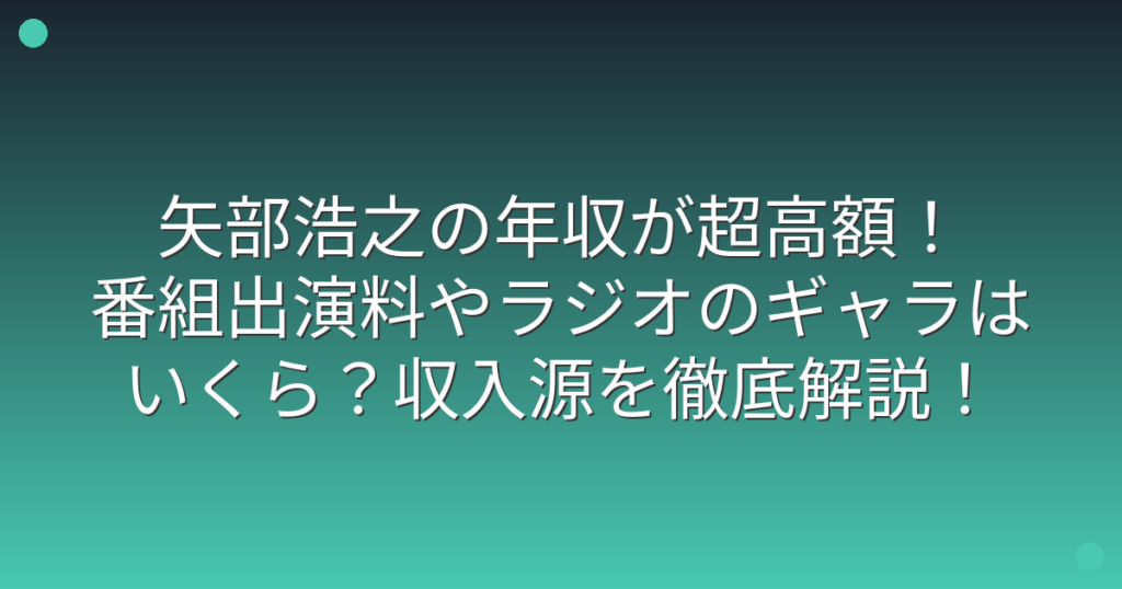 矢部浩之の年収が超高額!番組出演料やラジオのギャラはいくら?収入源を徹底解説!