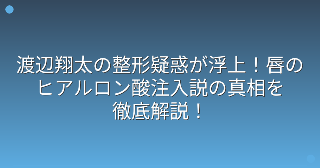 渡辺翔太の整形疑惑が浮上!唇のヒアルロン酸注入説の真相を徹底解説!
