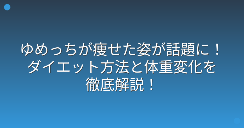 ゆめっちが痩せた姿が話題に!ダイエット方法と体重変化を徹底解説!