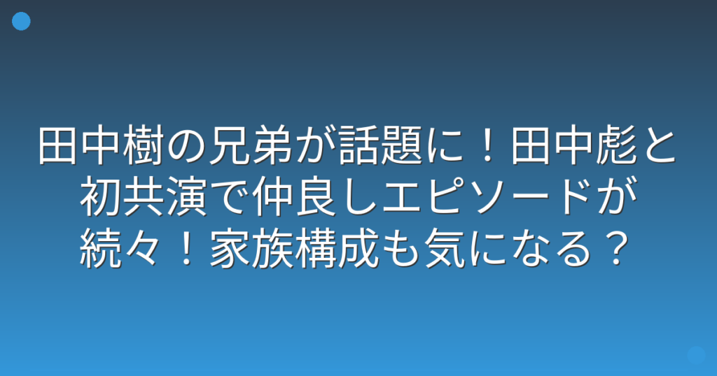 田中樹の兄弟が話題に!田中彪と初共演で仲良しエピソードが続々!家族構成も気になる?