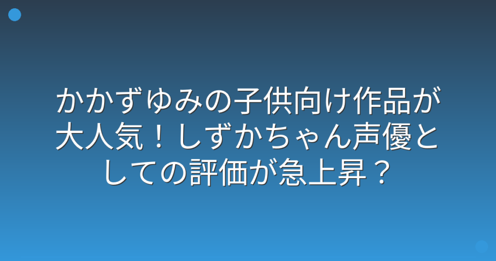 かかずゆみの子供向け作品が大人気!しずかちゃん声優としての評価が急上昇?